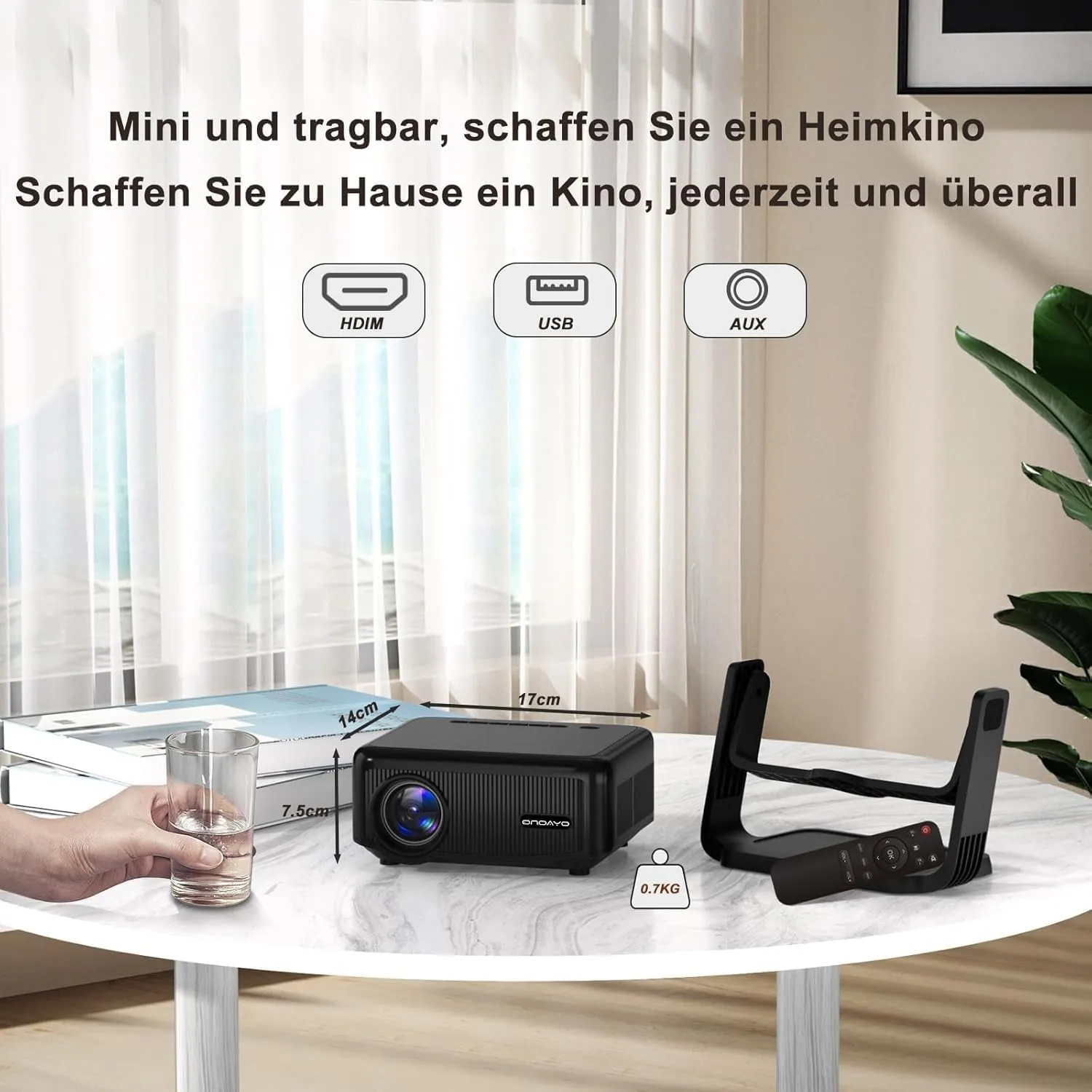【高亮画质——1080P全高清,最大可投300英寸】